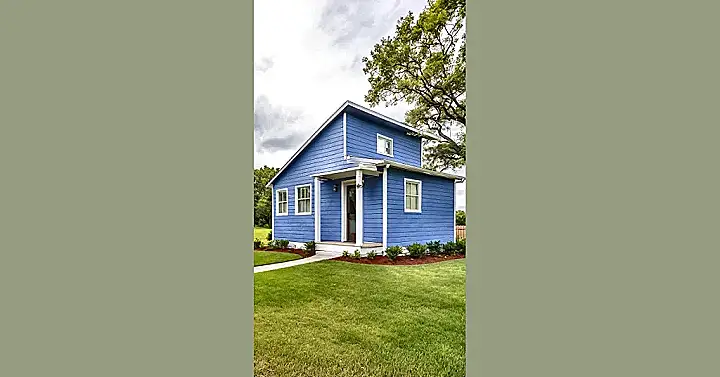 Thinking about ‘small house design’ brings up all sorts of awesome perks, especially when you see a cozy spot like this blue beauty. You won’t need a map to find the bathroom, that’s for sure! Imagine all the extra time you’ll have for epic video game sessions or just chilling, because cleaning day will be over faster than a TikTok trend. Plus, less space means fewer places for your socks to mysteriously vanish, which is a win in itself.