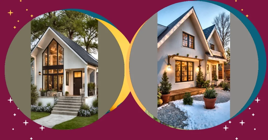Look at this place! It’s like a gingerbread house decided to grow up, get stylish, and then throw a party with all its favorite string lights. This isn’t just a house; it’s a super-sized hug waiting to happen, even if it might be classified as ‘tiny’ on paper. With those warm lights glowing from every window and the fresh snow dusting the ground, you can almost hear the hot cocoa simmering inside and feel the warmth radiating from this perfectly framed picture. Forget gigantic mansions; this is where all the real magic is packed into a compact, adorable package, proving you don’t need endless space to create an unforgettable vibe.