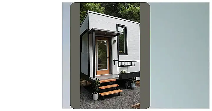 Look at this cool micro house! It’s basically a regular house that decided it wanted to travel light. This tiny version still manages to look super stylish, with its sleek siding and dark trim. It even has cute little wooden stairs leading up to the front door and a mini outdoor seat that’s perfect for one person (or maybe two if you really like each other) to chill on. It’s proof that you don’t need a mansion to have a place that looks modern and inviting, though you might need to leave your pet elephant outside.