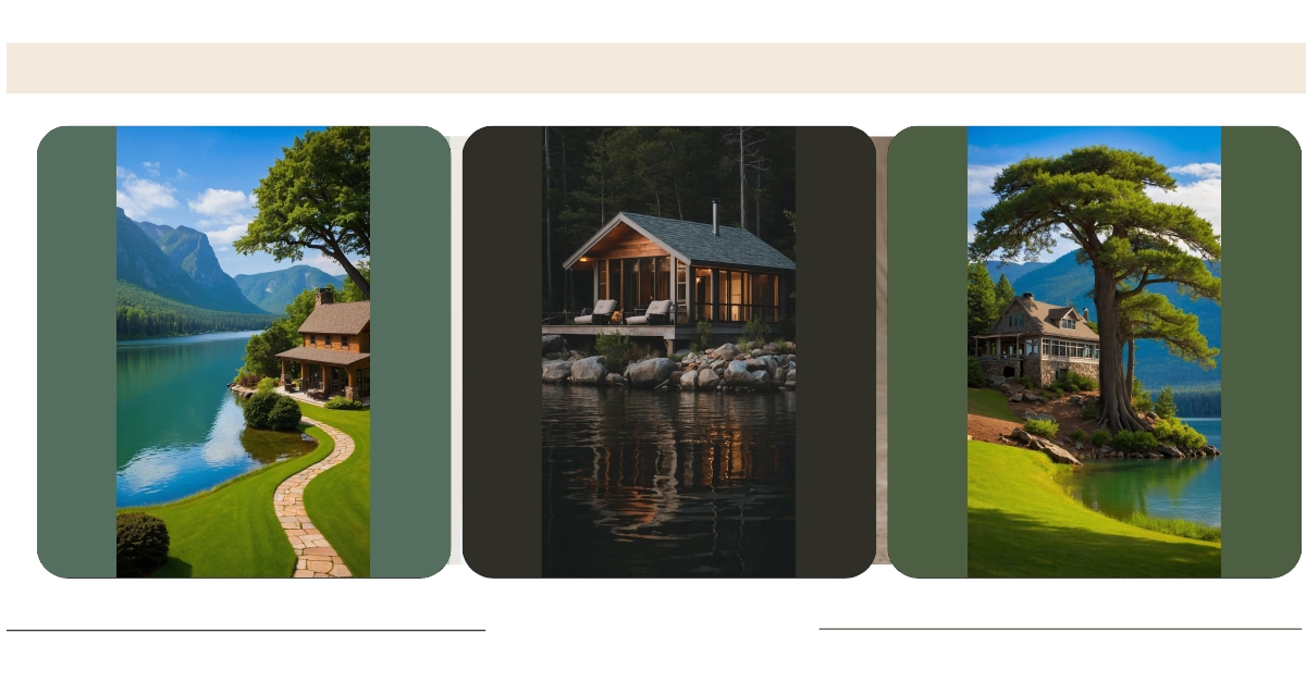 Nestled at the edge of a tranquil lake, surrounded by towering pine trees and the soothing sounds of nature, a rustic lakeshore cabin beckons with its charm and coziness. Inside, weathered wood beams overhead, a crackling fireplace casting a warm glow, and inviting plaid armchairs inviting you to sink in and relax. The scent of freshly brewed coffee mingles with the crisp air from the open windows, bringing a sense of peace and harmony to this idyllic retreat.
