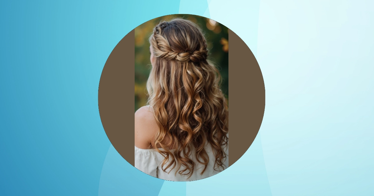 This hairstyle is seriously giving us all the autumn vibes! It’s like a cozy sweater for your hair – warm, comfortable, and perfect for the changing season. The loose, curly waves create a romantic and relaxed look, while the braided crown adds a touch of elegance and a pop of interest. It’s the kind of hairstyle that screams “I’m ready for pumpkin spice lattes and crisp autumn air!”