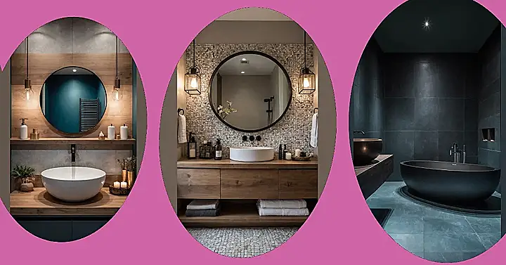 This isn’t your grandma’s pastel pink bathroom, that’s for sure! Check out that awesome bowl-shaped sink; it looks like something from a fancy art gallery, definitely not something you just spit toothpaste into. And who knew wood panels and a cute little plant could make a bathroom feel so cozy and inviting? With those lit candles, it practically screams, “Relax, you deserve it!”… just don’t accidentally set your hair on fire while trying to scroll through TikToks. It’s the kind of bathroom decor that makes even the dreaded morning routine feel a little bit luxurious, helping you almost forget about that early alarm.