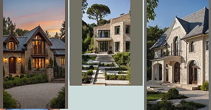 This house looks like a classic French cottage got bitten by a radioactive spider and grew superpowers (and like three extra stories). It’s rocking that cool stone exterior vibe that says “I’ve been here forever, probably selling cheese,” but then you see those huge, sleek windows and the seriously epic stairway leading up like it’s the entrance to a movie set. It definitely feels less like baking bread in a tiny kitchen and more like you need a map, maybe a Segway, just to get from one side to the other. Someone clearly went big or went home, and they definitely didn’t go home to a *tiny* cottage.