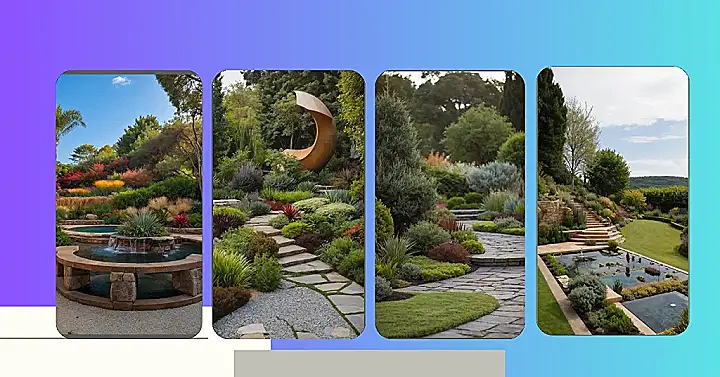 Turning a garden like this into an edible haven isn’t just about planting carrots in neat rows; it’s about making your landscape work double duty! Those fluffy plants near the pathway? Maybe they could be disguised lavender for calming tea, or even thyme you can snip for tonight’s pizza. You could tuck a raspberry bush behind that waterfall, so every time you walk by, you grab a sweet treat. It’s like your garden is secretly a giant grocery store, but way prettier and with zero checkout lines. You’ll amaze your friends when you offer them a fresh cherry tomato you just picked from your “decorative” plant – who knew gardening could be this delicious and this sneaky?