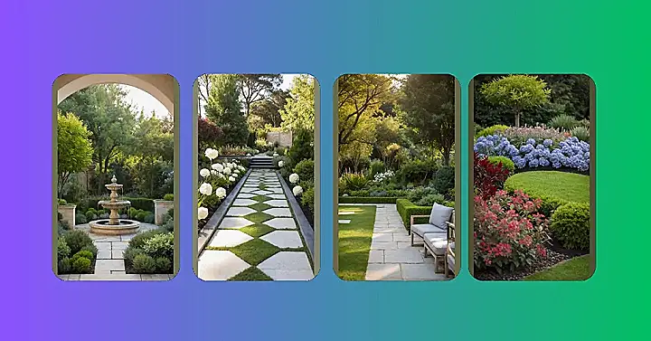 Following this neat stone path through all the gorgeous green, you eventually spot some little white flowers peeking out, adding a touch of classy contrast to the scene. It’s the ultimate ‘green and white’ vibe, minus any actual lawn darts. This is definitely the kind of garden where you expect squirrels to wear tiny ties and the birds to sing in perfect harmony, because everything else is just that incredibly organized and tidy.
