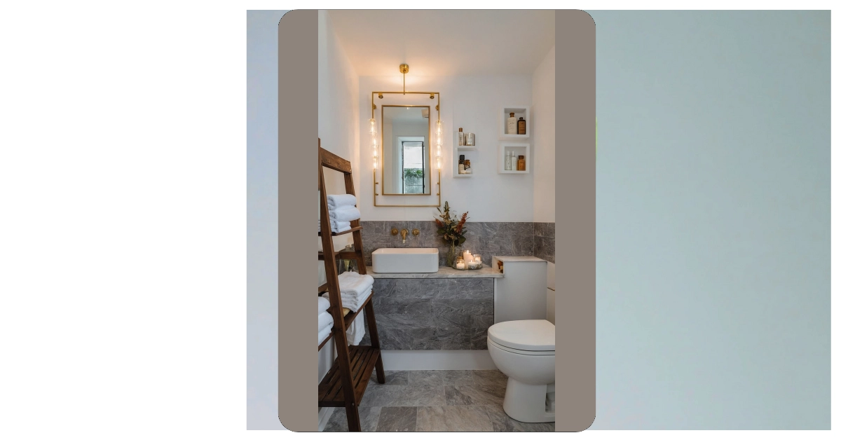 Who knew a bathroom could look this good? This isn’t just a place to get ready; it’s practically a five-star spa disguised as your everyday washroom! Just check out those super chic grey tiles; they’re so stylish, they probably have their own Instagram. And don’t even get me started on the fluffy white towels stacked perfectly on that trendy wooden ladder – they’re practically begging you to ditch your crusty old bath sheet for some real luxury. This room definitely screams “adulting goals” louder than your alarm clock on a Monday morning.