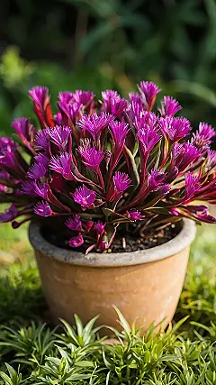 These faux outdoor plants are seriously rocking that vibrant purple vibe, making this potted beauty look like it just stepped out of a botanical magazine. Who needs to water when you can just chill and enjoy the eye candy? Perfect for those of us who are plant parents in spirit, but plant killers in reality – no shame in the faux game!