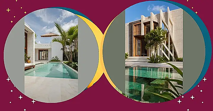 Imagine ditching homework and chilling by that pool! This Bali house looks straight out of a movie, especially with that cool sun face staring down like it’s judging your cannonball technique. You could totally imagine yourself sipping smoothies in that comfy chair, plotting which embarrassing photos to post of your friends while they’re splashing around.