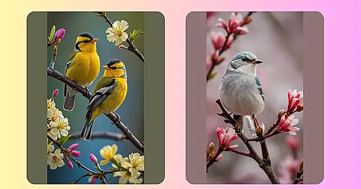 I bet these birds are gossiping about who’s got the best nest this season. With flowers blooming like that, you just know there’s some serious real estate drama going down in the bird world. Maybe they’re arguing about whether pink or yellow flowers are the better nest decor. Either way, you know spring has sprung when the birds start chirping… and judging.