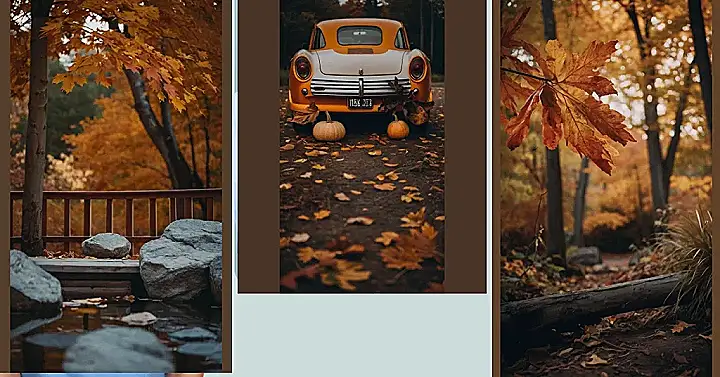 Imagine a world where the leaves are turning a fiery orange and red, and the air is crisp and cool. You’re walking through the woods, the scent of pine filling your nostrils, when you stumble upon a hidden pond. This isn’t just any pond though; it’s surrounded by a little wooden fence and scattered with smooth, gray rocks like stepping stones. You can almost hear the whispers of the wind rustling through the leaves, and you know this is a perfect spot to sit and enjoy the peacefulness of the fall season.