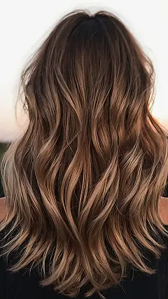 This hair is seriously on point, like a total hair-spiration! It’s dark blonde but with these super cute light streaks that make it look like sunshine is trapped in those strands. It’s all soft and wavy, giving off those effortless “I just rolled out of bed and look amazing” vibes. You know the ones!