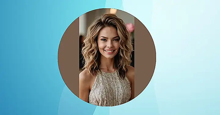 This hairstyle is perfect for a party! It’s like the model’s hair is having its own little party – all bouncy and layered, ready to dance the night away. Imagine twirling on the dance floor with these gorgeous waves; they’d look amazing under disco lights or even just chilling with friends. No need for anything fancy, just some awesome medium layers and you’re good to go!