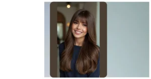 This hairstyle is like a party in your hair! It’s medium-length, layered to perfection, and totally ready for any celebration. Imagine yourself dancing the night away, your gorgeous, subtly highlighted layers moving with you – no awkward flyaways or boring straight hair here! This style is effortlessly chic, meaning it looks amazing but doesn’t need a ton of fuss. Plus, that side-swept fringe? It’s the ultimate frame for your face, making your eyes sparkle even more.