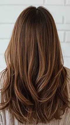 This hairstyle is perfect if you’re heading to a party and want to look absolutely smashing! It’s got that effortlessly cool vibe, like you just woke up looking this amazing (we won’t tell anyone it took a little bit of styling magic). Those loose, medium layers are super versatile – they frame your face beautifully, add some bounce, and are way more fun than a boring old ponytail. Imagine yourself dancing the night away with this gorgeous hair – it’ll be the envy of everyone on the dance floor!
