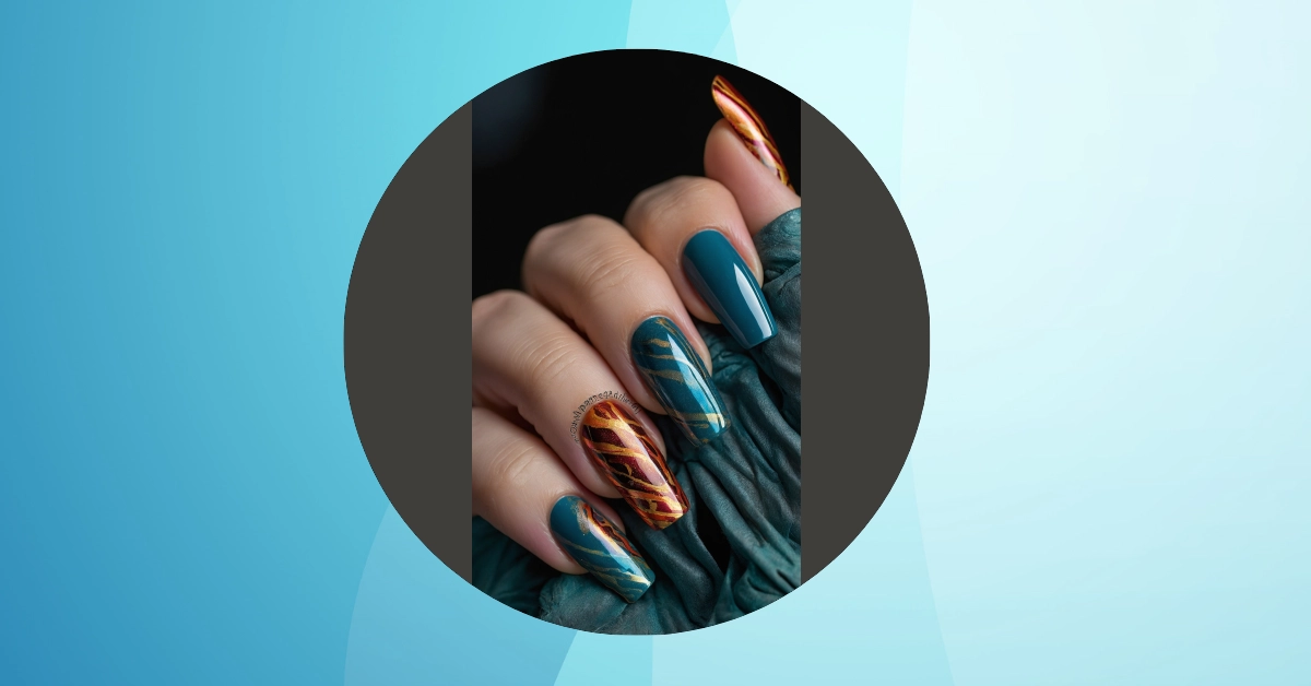 Guess what? If you thought fall was all about cozy sweaters and pumpkin spice lattes, prepare for a serious glow-up for your fingertips! These awesome fall nail designs are practically screaming “autumn chic” with a side of sophisticated sass. Those deep teal nails look like a fancy jewel, while the golden swirls add a touch of magic, making your hands ready for all those aesthetic autumn posts without even trying.