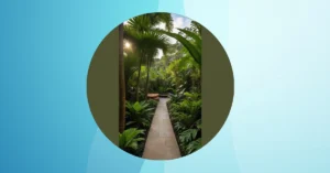 This picture makes me want to grab a picnic basket and wander through the lush green pathways. It looks like a secret garden hidden away in a fairytale. There’s a mysterious blue door that whispers promises of adventure, and the path winds through a rainbow of colorful flowers. The whole scene is bursting with life, and it’s hard not to imagine a mischievous fairy hiding behind a giant fern or a tiny dragon peeking out from a flower bud!