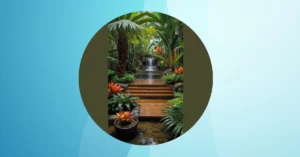 Forget a “simple backyard” that’s just a patch of grass and a wobbly picnic table. This isn’t just an outdoor space; it’s like hitting the jackpot of comfy nature time, without having to actually brave the bugs or sudden downpours. With that super cool glass roof and those squishy sofas, you’re basically chilling *inside* the forest, but with the added bonus of ceiling fans and no suspicious rustling in the bushes. It’s perfect for contemplating deep life questions, like “Is it socially acceptable to eat pizza for every meal?” or “Did I remember to charge my phone for endless scrolling?”