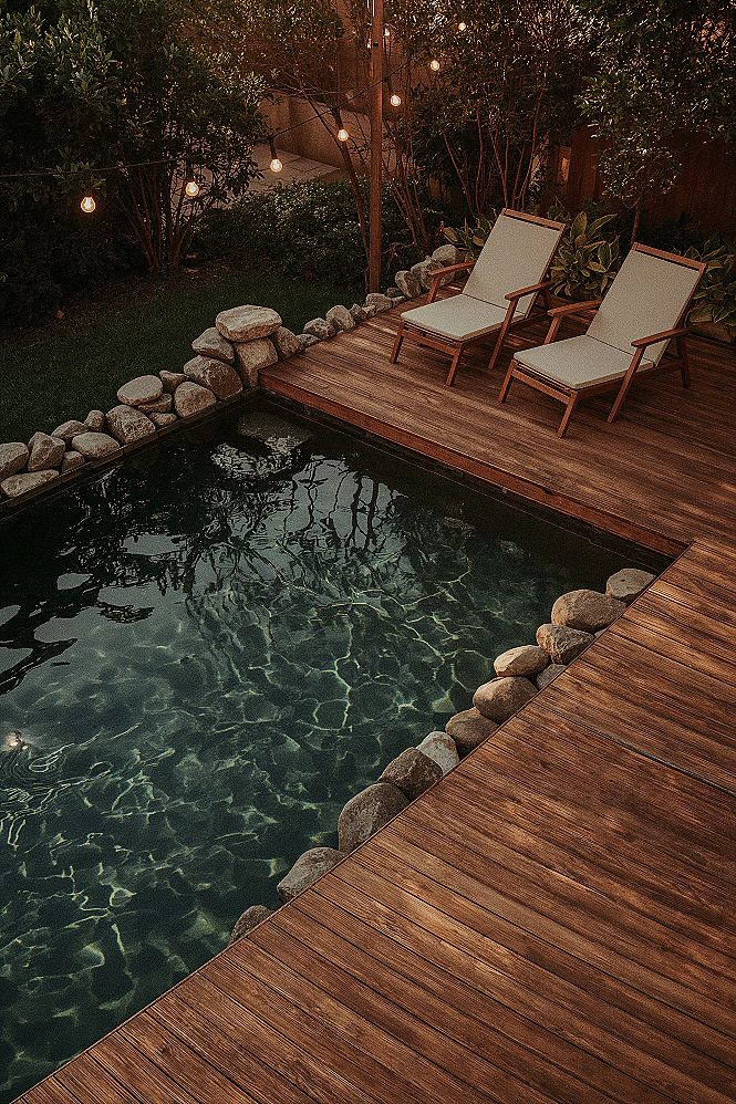 This cute pond idea integrates seamlessly into the garden, offering a serene escape and a touch of modern outdoor landscape inspiration for your dream yards.