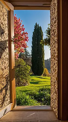 And let’s be real, if this stunning outdoor scene was actually a giant ‘window wallpaper’ you could hang on your wall, your room would instantly get an upgrade from ‘meh’ to ‘marvelous.’ Think about it: no more boring white walls, just a constant, sun-drenched garden party featuring a majestic tree that looks like it’s auditioning for a tall-tree competition. You could tell your friends you bought a mansion in Tuscany, and they’d totally believe you until they tried to lean out and grab one of those pretty pink blossoms. Just don’t forget to add the sound effects of chirping birds for maximum effect!