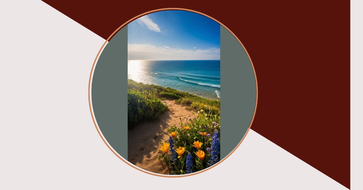 Waking up to this incredible view every day? Yes, please! Forget staring at your neighbor’s fence or a less-than-thrilling backyard; this gorgeous scene is practically begging to be your new reality. With that endless blue ocean sparkling under the sun, fluffy clouds doing their chill thing, and those vibrant yellow and purple flowers saying hello from the sandy path, it’s like a mini-vacation just for your eyeballs. You can almost feel the gentle breeze and hear the waves crashing – all without having to put on actual pants or deal with sand getting everywhere! Talk about a total win-win situation.