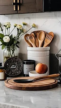 Who knew a bunch of bright yellow roses could instantly upgrade your kitchen from “just a place to grab snacks” to “fancy adulting vibes”? These cheerful blooms are like a secret weapon for simple kitchen decor, shouting, “Hey, maybe today we’ll actually make something more exciting than toast!” Paired with those stylish wooden cutting boards and utensils, which honestly look too good to actually chop onions on, you’ve got a setup that screams “I have my life together,” even if your biggest culinary achievement is mastering instant ramen.