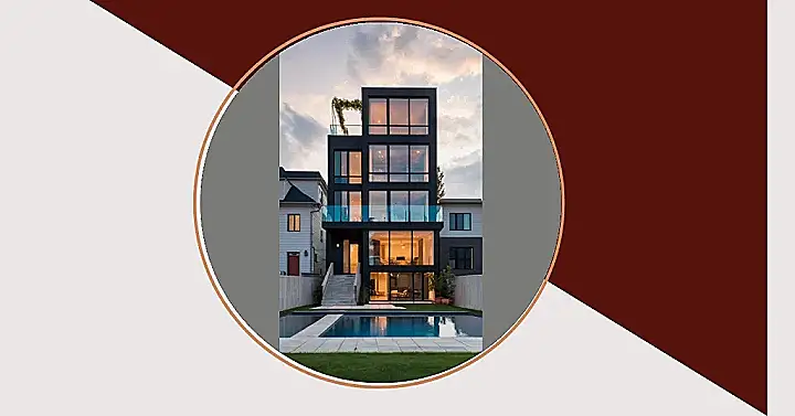 Forget boring brick! This isn’t your grandma’s townhouse. Check out this sleek, modern stunner – all curvy windows and a dark, mysterious exterior that whispers “come inside and explore.” It’s like a White Stucco Townhouse got a super stylish makeover, trading its grandma’s floral wallpaper for high-tech glass and a whole lot of attitude. Imagine yourself relaxing on that balcony, sipping lemonade (or something a little stronger if you’re old enough!), while your neighbours stare in envy.