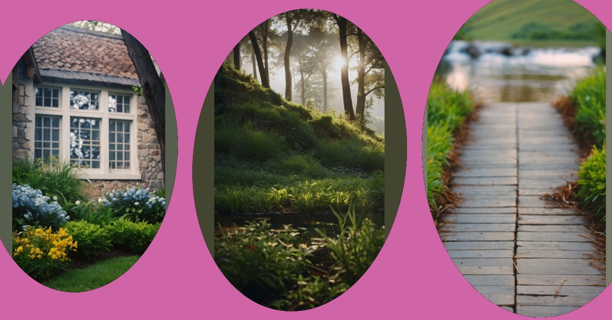The image shows a wooden walkway leading to a serene, blurry river. It’s like a path through a secret garden! The lush green grass on either side makes it feel like a magical escape, especially with the soft light coming through the trees. You can almost hear the gentle sound of the river and feel the soft breeze as you take a stroll down the path.