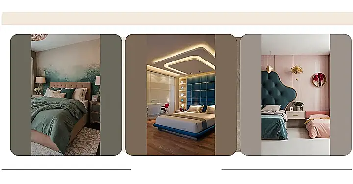 Imagine having a bedroom so cool, it makes doing homework seem… slightly less awful. This bedroom interior design is like a chill-out zone meets art gallery, with colors that are both fun and calming. That headboard looks like something a queen would use for her royal naps, while the funky lights hanging down are definitely conversation starters.