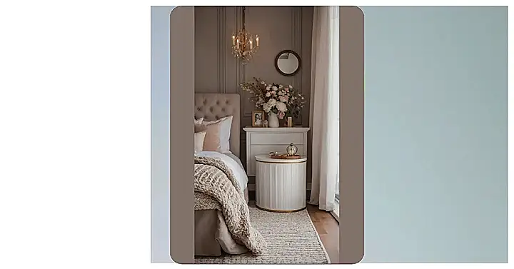 This image isn’t just pretty, it’s basically a masterclass in how to make your room feel like a giant, cozy hug. Notice the fancy chandelier that says, “I’m too elegant for fluorescent lights,” or that little round mirror that perfectly reflects good vibes (and maybe your face after a long sleep). A room makeover isn’t just about painting walls; it’s about transforming your space from ‘where I sometimes sleep’ to ‘my personal sanctuary of awesomeness.’ So, if your room currently doubles as a storage unit for questionable fashion choices, take inspiration from this chic spot and dream up your own epic transformation!