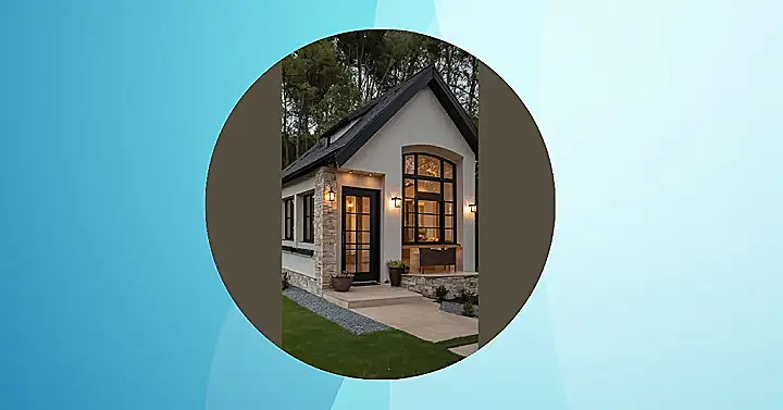 This isn’t your average suburban box house; this place looks like it just stepped out of a cool architectural magazine, proving that ‘unique house design’ can be super stylish! With its cozy stone bits hugging the front door and that ridiculously huge, arched window that practically takes up the whole wall, it’s got major curb appeal. You can just tell someone spent serious time making sure this house wasn’t boring, like, at all. It’s got that perfect blend of modern cool and fairy-tale charm, probably making all the other houses on the block feel a little bit jealous.