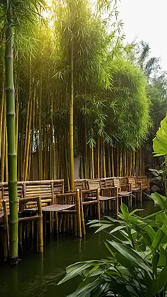 Those bamboo benches and tables look like they’re ready for a serious chill session. Maybe you could even bring a book and pretend you’re super deep while secretly scrolling through memes. With all that bamboo, it probably smells amazing, too. Just try not to get too distracted by the zen vibes or you might accidentally fall into the water!