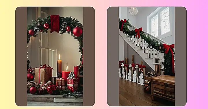 Even if your apartment is smaller than a gingerbread house, you can still have a Christmas that’s HUGE on festive fun! This picture shows how a little bit of Christmas magic can transform even the simplest space. See those stairs decked out in red and white? Imagine how cozy it would be to walk down them, knowing Santa might just leave a present on your doormat! It’s all about making the most of what you have—a few fairy lights, some festive greenery, and maybe a strategically placed mini-tree can add a mountain of Christmas spirit to your apartment, proving that size really doesn’t matter when it comes to holiday cheer.