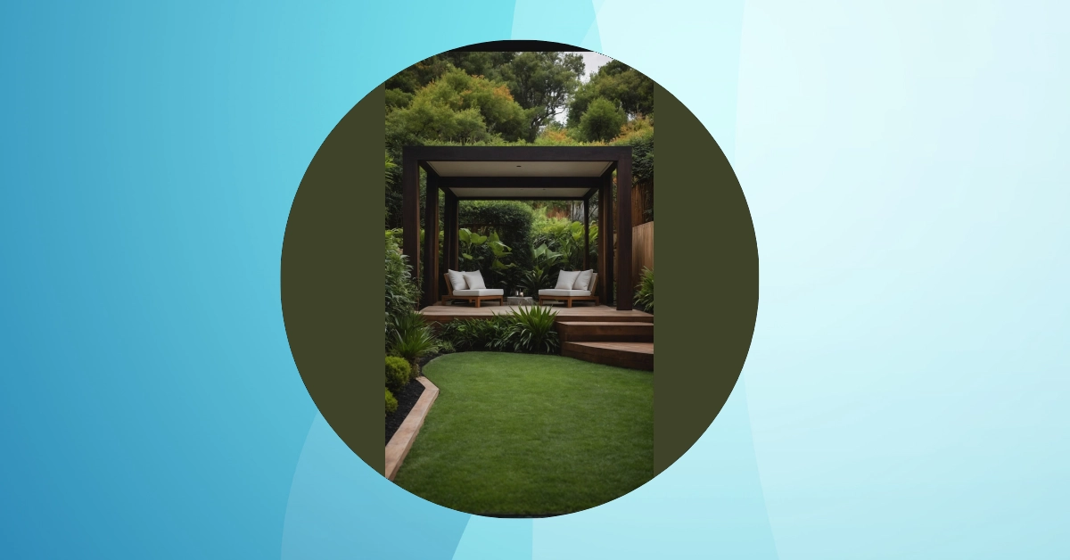 Look at that perfectly striped lawn, leading you right up those inviting steps to your personal outdoor living room! It’s like Mother Nature decided to open her own five-star resort, complete with plush seating and enough leafy privacy to spill all your secrets without judgment (the plants are good listeners, we hear). This isn’t just a garden; it’s a strategic operation to defeat the sun’s tyrannical rays and create a haven where your only job is to kick back. You could probably even convince your parents it’s a great spot for “focused study,” when really you’re just enjoying the breeze and planning world domination.