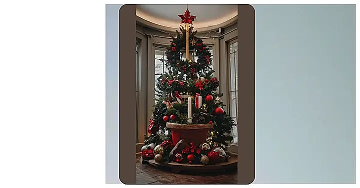 Forget tiny lights tucked away on a small branch – this tree is a statement piece! It’s got a wreath on top, twinkling lights galore, candles for a warm glow, and enough ornamentation to make Rudolph jealous. This isn’t your grandma’s simple Christmas tree; it’s a bold, festive, and frankly, enormous display ready to greet the world with a massive “Merry Christmas!” Anyone driving by is going to need sunglasses, that’s how bright this tree is!