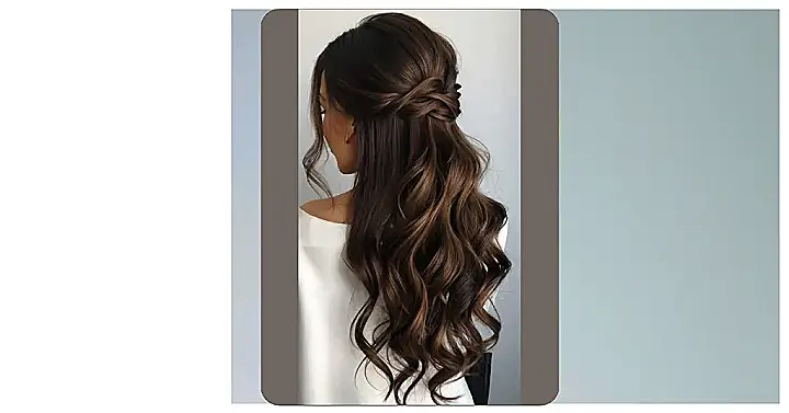 This style proves you don’t need to spend hours in a salon to look amazing. The half-up, half-down ‘do keeps your hair out of your face while showing off those gorgeous curls. And honestly, a pretty accessory like that floral crown makes it look like you tried way harder than you actually did. It’s the perfect hack for rocking a fancy event without the fancy fuss!