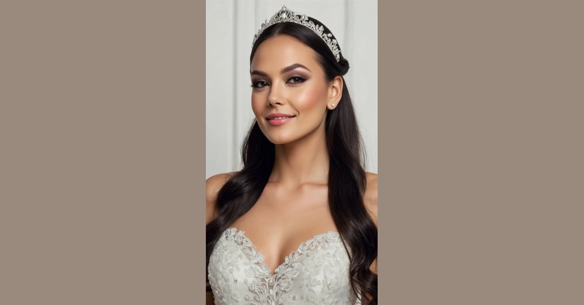 Getting ready for your big day can be a little overwhelming, especially if you’re not used to fancy hair and makeup. But don’t worry! It’s all about feeling confident and radiant, like a princess stepping out of a fairytale. This beautiful bride looks like she’s ready to walk down the aisle and become a queen with her sparkling tiara and flawless glow!