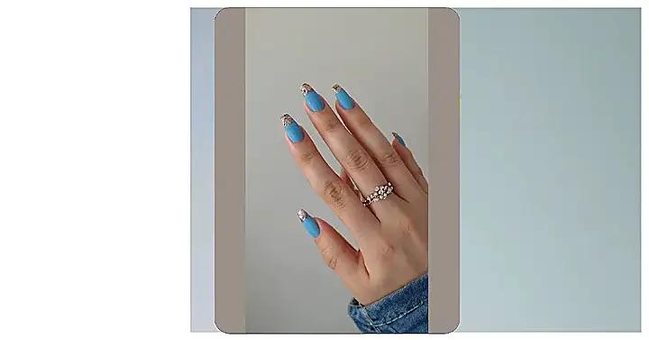These nails are like a breath of fresh air. They’re simple, elegant, and definitely not boring! The light blue is a total mood, and the tiny flecks of gold at the tip give them just a touch of sparkle. Plus, they’re super easy to maintain – no complicated designs or intricate patterns. You can rock these nails without spending hours in the salon, and they’ll still look fabulous.
