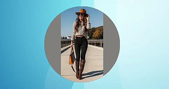 But let’s talk about those boots! They’re like the stars of the show, and they’re practically begging you to wear them with everything. Imagine yourself rocking these boots with jeans, skirts, dresses… the possibilities are endless! So, if you’re looking for a fall outfit that will make you feel confident and ready to conquer the season, you can’t go wrong with this look. Just make sure to snag a pair of comfy boots before they disappear!