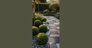 And check out those enormous rocks chilling by the walkway – they look like sleepy giants taking a nap among the greenery. That little stepping stone path looks like it’s daring you to play hopscotch or maybe just leading you to where the coolest plants are hiding. It’s proof that tropical plants aren’t just green filler; they’re the main event, turning a simple garden into something that feels straight out of an adventure movie, just maybe one where the biggest danger is tripping over a particularly enthusiastic root!