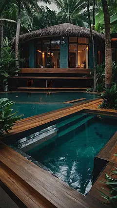 This tropical luxury house villa is seriously next level! The thatched roof gives it that authentic island vibe, while the modern design keeps it feeling super chic and comfy. It’s like the best of both worlds – you get the laid-back relaxation of a tropical paradise with all the fancy upgrades you could ever want. I bet the sunsets from that infinity pool are absolutely breathtaking! Best of all? You’d be so close to nature, you might even spot a monkey swinging through the trees – that is if you ever manage to tear yourself away from your amazing new digs!