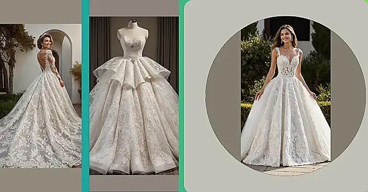 Thinking about dream wedding dresses can get pretty wild, right? This dress in the picture is basically the final boss level of ‘dreamy.’ It’s got enough lace to cover a small house and a skirt so big you might accidentally sweep the floor cleaner than the cleaners. You put this on, and suddenly you’re not just walking, you’re gliding… or maybe wobbling slightly under the weight of looking this amazing. It’s definitely the kind of dress you fantasize about, just maybe keep an eye on where your feet are going!
