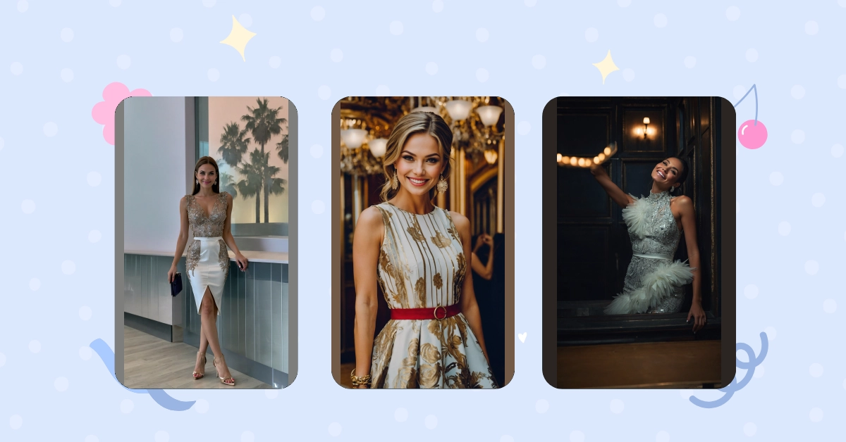 This dress is totally boss-level for your office holiday party! Imagine yourself walking in, all smiles and shimmer, in this gorgeous gold-and-white number. It’s like a fancy, grown-up version of your favorite sparkly top, but way more festive. You’ll be the best-dressed employee, no question. Just picture all the compliments – and the delicious holiday snacks you’ll be able to enjoy without worrying about spilling on your outfit (because let’s be honest, that’s always a risk!).