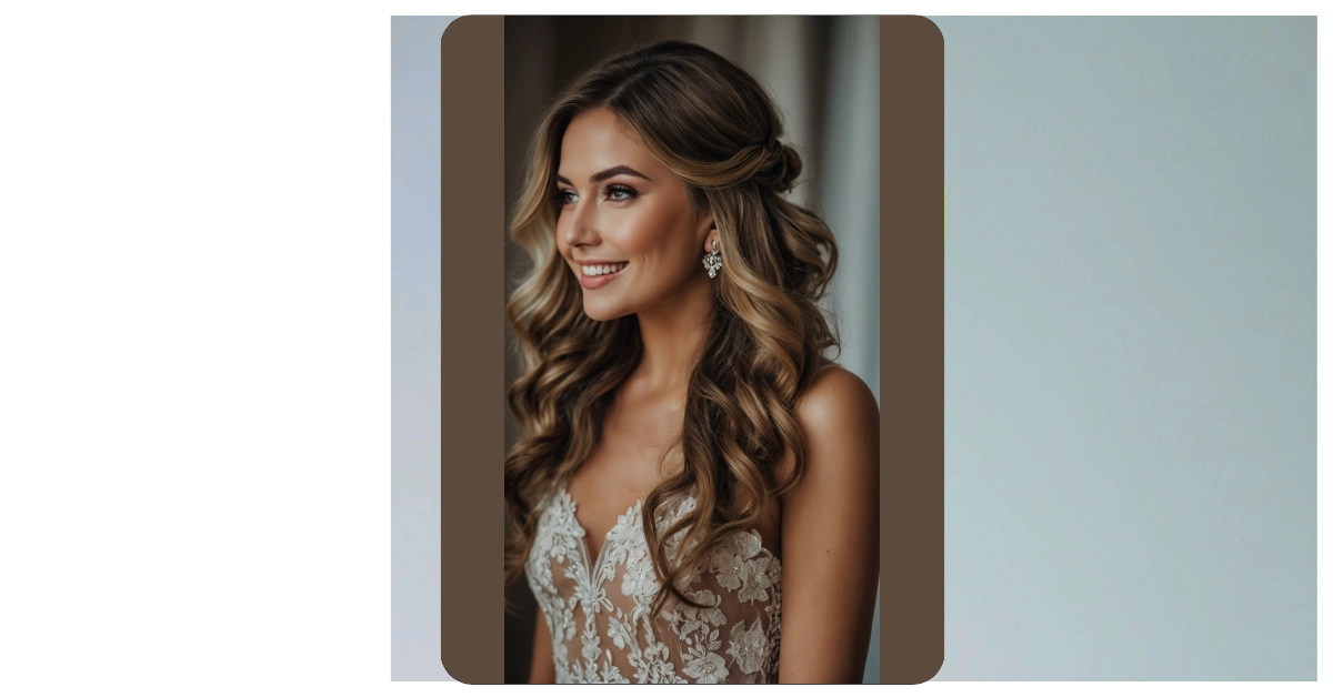 Forget about those questionable hair experiments you tried in middle school; this is the kind of hair magic we’re talking about for 2025 brides! Just look at this gorgeous half-up, half-down style. It’s got those perfect bouncy waves that say, “I’m effortlessly chic” instead of “I wrestled a hairbrush and lost.” Plus, keeping some hair off your face means less chance of it sticking to your lip gloss when you’re busy smiling for a million photos. This look, with its soft curls and elegant sweep, is truly a top contender for the best bridal hairstyles of the future!