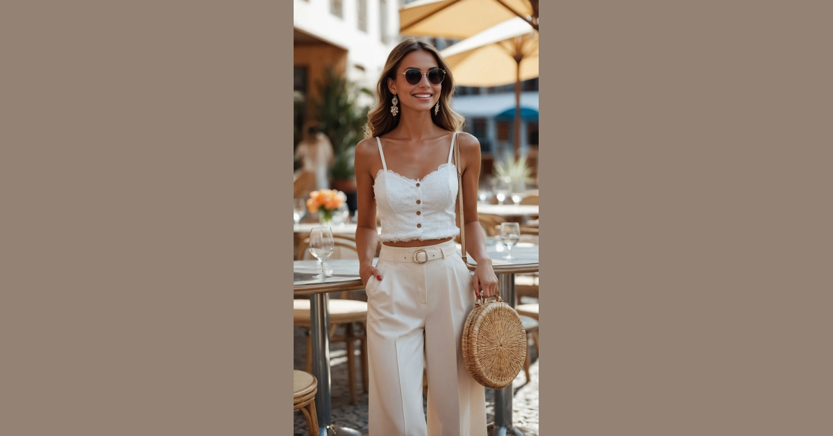 Finding the ideal vacation outfit for women can sometimes feel like a mission impossible, especially when you’re trying to pack light but also look fantastic for every single photo op. But check out this look! A light, bright outfit like this one screams “I’m on holiday and completely stress-free,” even if you just spent an hour trying to zip your suitcase shut. It’s the perfect blend of comfy, cool, and cute, meaning you can go from exploring charming little towns to grabbing an ice cream without needing a costume change. Who knew looking this effortlessly chic only required one amazing set and a fabulous smile?