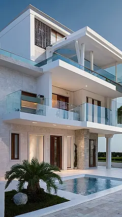 So, this isn’t your grandma’s classic villa… unless your grandma is secretly a billionaire with seriously good taste! This place is like a history book and a futuristic spaceship had a baby. It’s got that grand, old-school look, but with super clean lines and a massive doorway that practically screams, “Come on in, the pool is calling!” It’s basically the architectural equivalent of wearing a tuxedo with sneakers – unexpected, but somehow totally works.