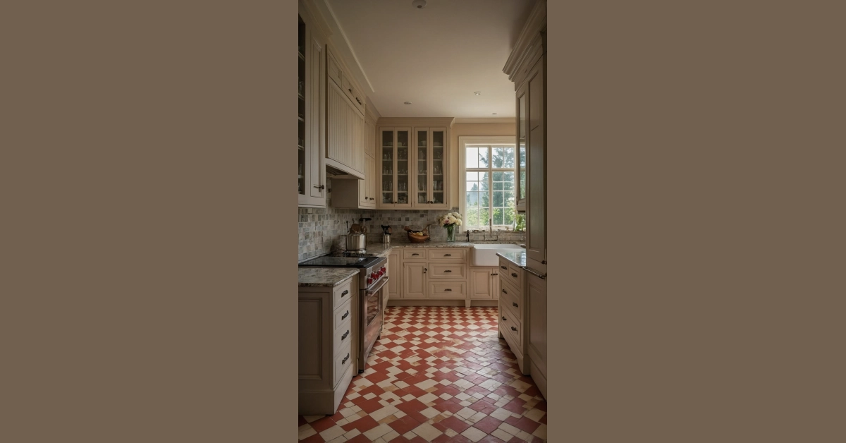 Forget about staring at your phone while you’re supposed to be doing dishes – this kitchen floor is way more interesting! With its cool checkerboard pattern in shades of rustic red and creamy white, it’s practically begging you to play a giant game of chess or maybe just practice your dance moves. Who knew floors could be this fun? This isn’t your grandma’s old linoleum; this classic checkerboard style is making a super trendy comeback, especially for 2026, proving that some designs just never go out of fashion.