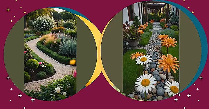 This picture is like a sneak peek into someone’s secret garden! It’s got all the things you’d want in an outdoor paradise: colorful flowers, lush green plants, and even a cute little stone path leading somewhere exciting. Imagine strolling along this path, with the warm sun on your face and the sweet scent of blooming flowers filling the air. It’s the kind of place where you could get lost in thought and let your imagination run wild!