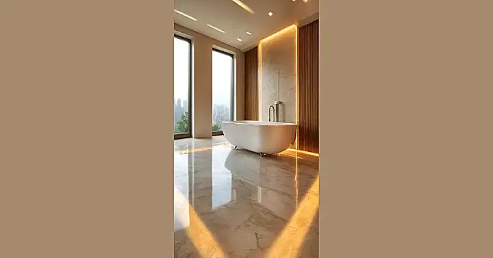 With epoxy, cleaning this amazing spa-like space would be a total breeze – just wipe and go! No more fretting over whether a dropped makeup brush will chip the tile or if water from that cool shower feature (seriously, an indoor waterfall?!) is going to seep into cracks. Epoxy flooring is tough, waterproof, and can even be designed to look exactly like this fancy marble, or totally out-of-this-world metallic patterns. So, while this room looks like a million bucks, an epoxy floor would make sure it stays looking awesome, even if your little sibling decides to turn the bathtub into a pirate ship.