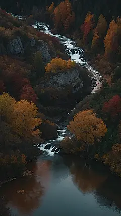 This picture is a perfect example of landscape photography. It shows a beautiful waterfall flowing through a lush forest. The water looks so clear and clean, you can almost imagine jumping in for a swim! The leaves on the trees are changing color, which makes the whole scene look extra cozy and warm. It’s like nature’s own painting, all soft and beautiful.
