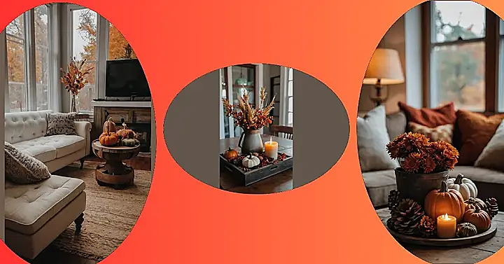 The image shows a living room bursting with the warm hues of fall. It’s a perfect example of how to bring the season’s colors and textures indoors. Think comfy blankets, soft pillows, and of course, pumpkins galore! This setup is practically begging you to curl up on that cozy couch, sip some hot apple cider, and get lost in a good book. It’s like a hug from your favorite sweater, but with a pumpkin-spiced twist!